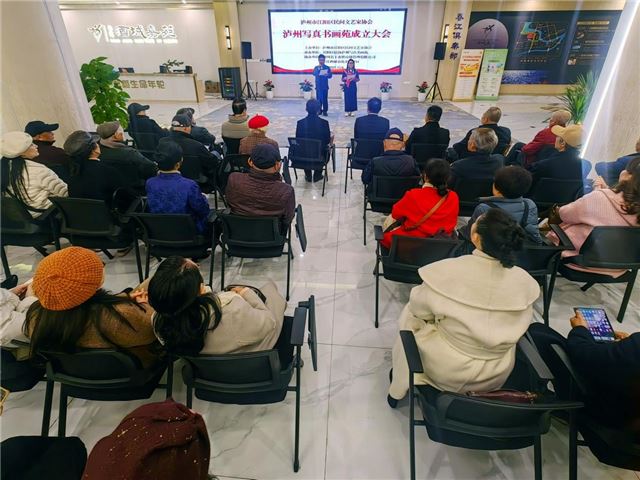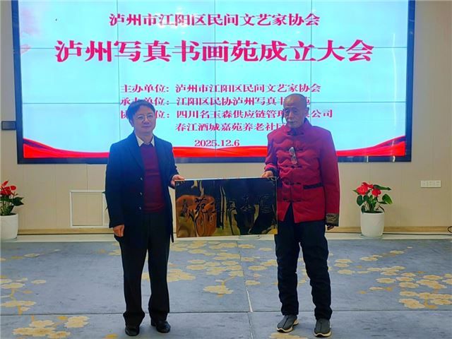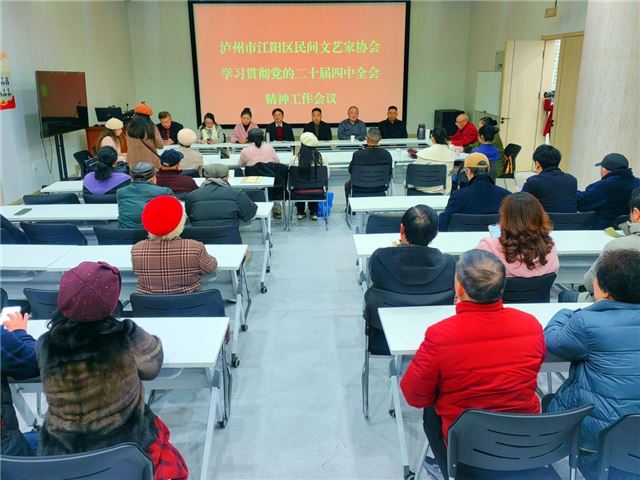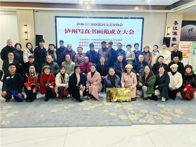 12月6日,泸州市江阳区民间文艺家协会于泸州春江酒城嘉苑召开学习贯彻党的二十届四中全会精神会议,同时举行江阳区民间文艺家协会泸州写真书画苑成立大会。江阳区民协副主席李良群、周群英、熊联芳、赵明珍、陈艳平,秘书长叶咏梅,顾问王乾林,名誉主席陈富均、李名玉、邓超艺等有关领导、嘉宾共40余人出席了此次盛会。