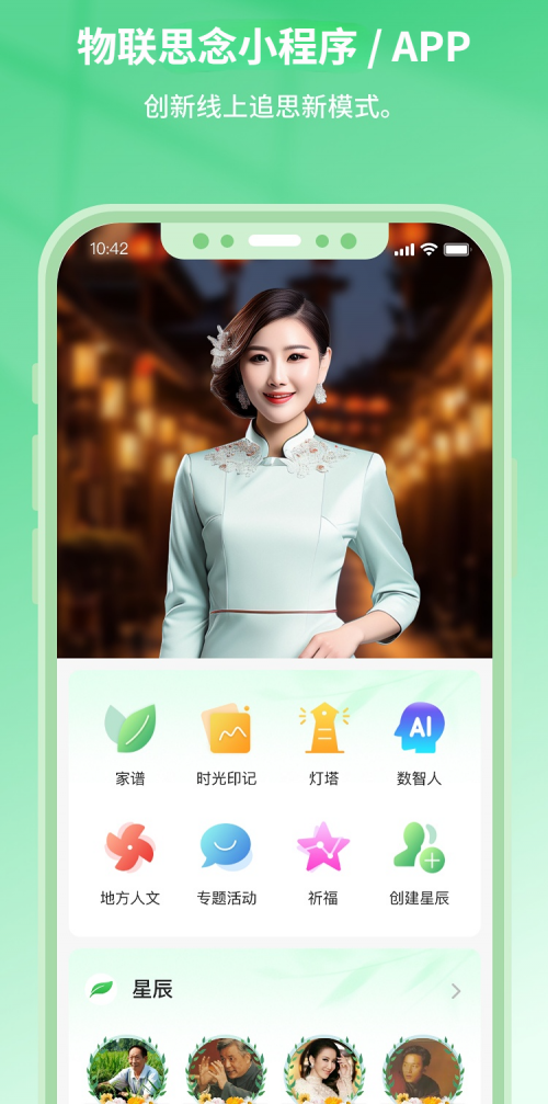 “物联思念”微信小程序,是一个以家庭文化与情感连接为核心的数字化平台。用户可以通过手机,随时随地建立属于家族的线上空间:记录家族脉络、书写家族故事、为亲友建立纪念页面,让散落在不同城市、不同国家的家人,在同一个“云端家园”中再次相聚。