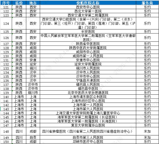 新华已上线快赔医院(统计至2025年11月30日)