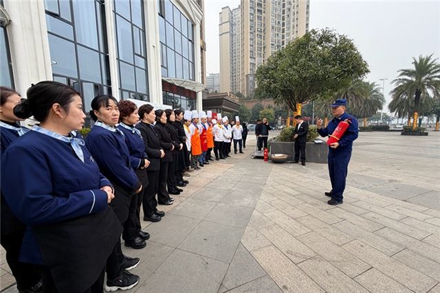 本次培训采用“理论授课+实操演练+现场指导”三位一体的模式。在理论讲解环节,宣传人员结合近年餐饮行业典型火灾案例,剖析了后厨用火、用电、用气常见隐患,重点讲解火灾初期扑救、疏散逃生及报警求助等内容。在实操环节,宣传人员现场演示灭火器、消火栓等常用消防器材的正确操作步骤,并组织参训人员逐一上手体验,确保人人会用、敢用、能用。此外,宣传人员还带领员工走进酒楼大堂、包厢和后厨等区域开展隐患排查现场教学,“手把手”指导如何识别风险、整改隐患,并对员工提出的疑问进行细致解答,进一步强化培训效果。