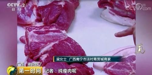 南宁市淡村商贸城商家 梁女士:像这种半肥瘦的猪肉8块/斤,去年卖多少钱。像这种去年就卖11块/斤、12块/斤。