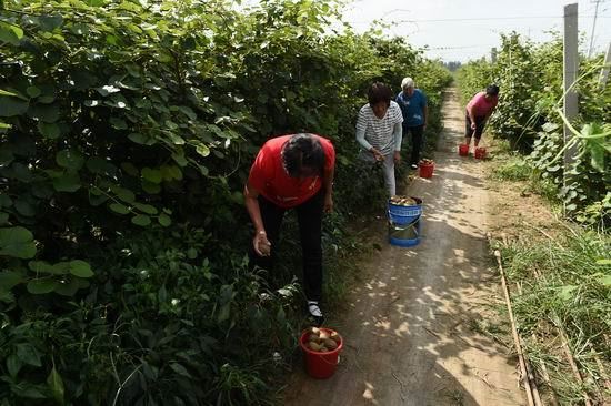 近年来,广饶县广饶街道通过“专业合作社+基地+农户”的模式,积极盘活农村闲置土地资源,并引进泰山一号优良猕猴桃品种,大力发展生态猕猴桃产业,不仅解决了农村土地撂荒难题,促进了农民增收,而且为农民工返乡创业创造了条件,吸引和带动了一批农民工返乡创业。 刘大哥告诉记者,今年种植的猕猴桃略有增产,亩产可达2000公斤,价格为每公斤16到18元。猕猴桃销售主要依靠游客观光采摘和订单收购。 ( 张建堂 孙梦建 摄影报道)