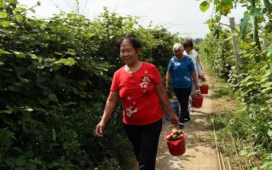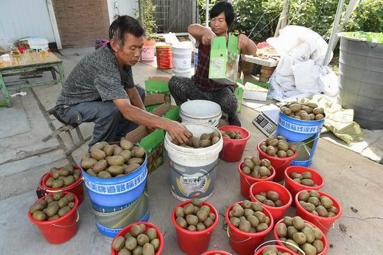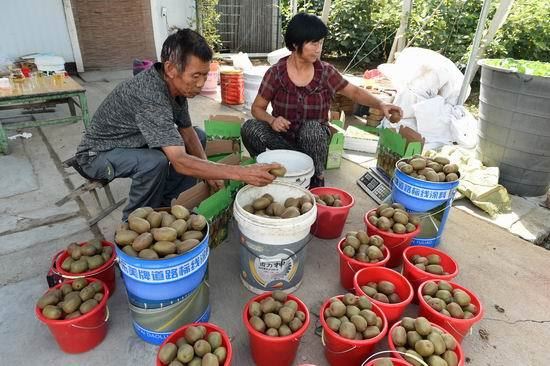 本网讯: 日前,山东省广饶县广饶街道颜三村的村民刘国明种植的猕猴桃进入了收获期。