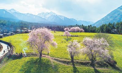 中科院和相关部门监测评估显示,当前西藏高原各类生态系统结构整体稳定,气、声、水、土壤、辐射及生态环境质量均保持在良好状态,大部分区域仍处于原生状态,西藏仍然是世界上生态环境最好的地区之一。图为6月初西藏林芝波密县境内桃花盛开的田园风光。