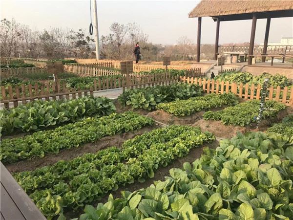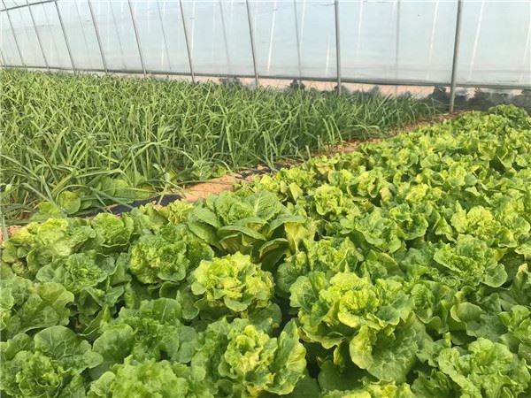形似神龟的山脚下,他们发现了一大片菜地。冬日暖阳下,天空瓦蓝瓦蓝,水灵灵的大白菜圆滚滚,绿白相间的萝卜足足有成年人手臂那么粗,笨菠菜肥硕的叶子绿得发黑。五六十亩菜地被平均划分为若干个40平方米的小菜园,木栅栏围得整整齐齐,每块小菜园又分成8小块,洋葱、蒜苗、白菜、上海青等品种不一,每垄之间打扫得干干净净。旁边还有3座蔬菜大棚,里面种植的品种就更多了,芦笋、茼蒿、香菜等“身娇肉贵”的细菜琳琅满目。