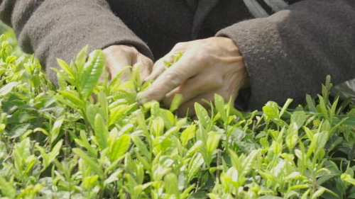 站在云雾缭绕的山巅俯瞰,茶树排列成行,十几位茶农站在其间,嫩嫩的茶尖伴着笑容,随着双手上下翻飞尽入背篓。