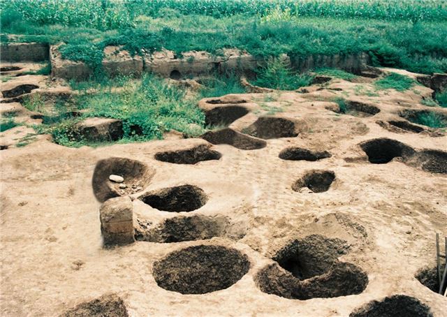 磁山遗址的主要遗迹是灰坑(窖穴),而独特的磁山文化内涵又主要表现在灰坑中。近几年来,磁山文化中共清理灰坑近千个。这些灰坑以圆形、椭圆形、长方形和不规则为特点,以长方形坑为最多见。磁山遗址共有189个灰坑中发现有粮食堆积,构成了磁山文化的主要因素。从1976年—1986年的三次正式发掘中,发现许多圆角长方形粮食窖穴。76—78年是在遗址南部开的方,85年是在北部,86年开的方大部分在遗址的西北部,无论在哪里开方,都能碰到粮窖,说明粮窖分布是很普遍的。磁山文化遗址具有鲜明的农业经济色彩,已发掘出的88个储粮窖穴,库存粟谷14万斤,可见当时农业相当发达,已达到了连年有余地步。