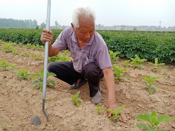 2021年5月19日,天蒙蒙亮,安徽亳州谯城区魏岗镇农民刘志标就来到田间忙碌着。刘志标告诉笔者,最近田间长了许多杂草,影响药材生长,今天他闲着没事就来田间中耕除草。