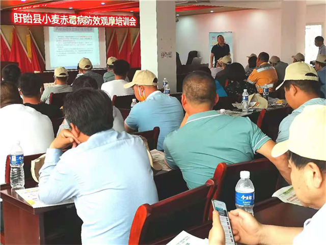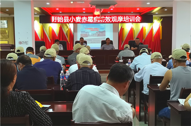 为全面了解今年盱眙县小麦赤霉病发生和防治情况,5月25日下午,盱眙县农业农村局组织小麦赤霉病防效观摩培训活动。参会人员为全县各镇街农村工作局局长、负责小麦病虫害防治的农技人员、农药经销商、小麦种植大户、省级“五有五好”服务组织及部分植保服务组织共约120余人。