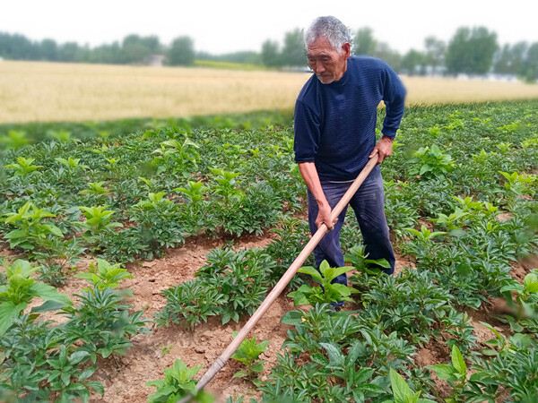 今年李山华75岁,因为是农民出身,种了一辈子的地,所以到现在也一直“不退休”。“‘人勤地生金’,这老话说的一点也没错,庄户人家,只要勤劳肯干,不愁没有吃喝。我种植的这6亩地是我孩子的地,他们现在都在外地工作,我在家里闲着没事,就种了点药材。其实种植药材只要肯用心,一年算下来也能挣个四五万块钱,不比出门打工挣得少。”李山华说。