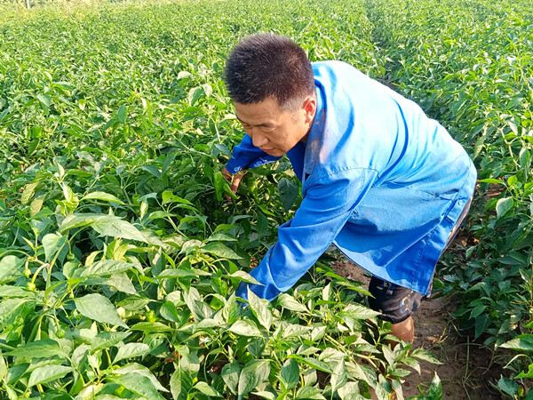 “种庄稼不能懒惰,平常要经常到田间观察农作物长势。辣椒田间不可积水,在每年的汛期之前要提前挖好排水沟,下雨时才能及时排水,做到雨停地干,畦面无积水。你看,通过这次大雨之后,我挖的排水沟都派上了用场,辣椒一点也没受到雨水的影响,长势非常好,这就是和别人一样的种庄稼,却有着不一样的收入的关键所在。”崔宏广一边讲着他的种植经验一边摘着辣椒。