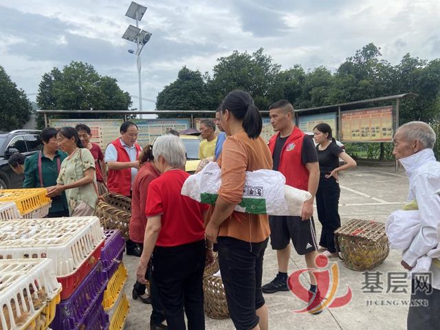 已脱贫户们担着箩筐,带着编织袋,早早的来到了村部等候,娄底市娄星区商粮局驻村帮扶工作队队长宣讲了相关养殖技术,要求鸡苗在领回之后要进行圈养,在发展养殖业的同时,要更加重视营造干净舒适的人居环境。