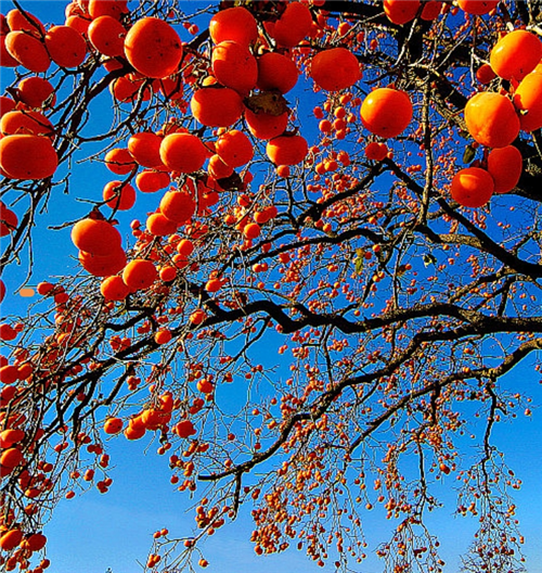 此时抬头,柿子树恰似一幅细作精工的剪影。