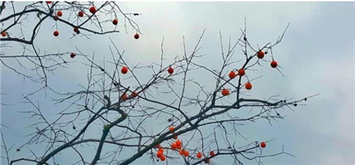 立冬,柿子林不再有秋雁南飞,划破清晨的安详。