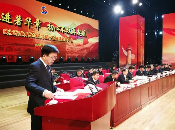 会上,陕建集团表彰了10家改革开放40周年暨千亿陕建突出贡献单位和20位功勋人物,4位获奖代表做了交流发言。