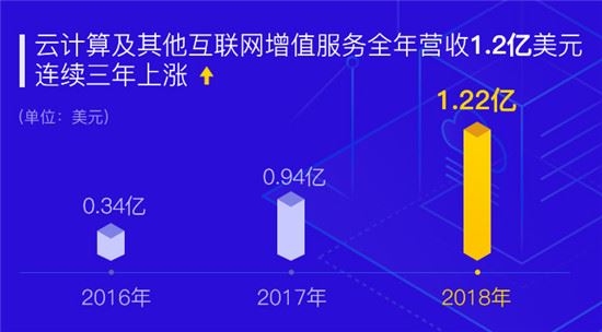 同时,云计算业务已经连续三年上涨,成为了迅雷稳定的增收引擎。根据财报披露,2016年迅雷全年营收中,包括云计算业务在内的其他互联网增值服务收入0.34亿美元;而2017年包括云计算业务在内的其他互联网增值服务营收为0.94亿美元,同比增长178.3%;2018年,云计算和IVAS的总营收为1.22亿美元,同比增长29.6%。