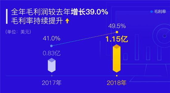 同时,2018年迅雷毛利润为1.15亿美元,同比增长39.0%,毛利率为49.5%,对比2017年毛利率为41.0%。2018年毛利润的提升,主要因为云计算业务得到改进及带宽成本的降低。