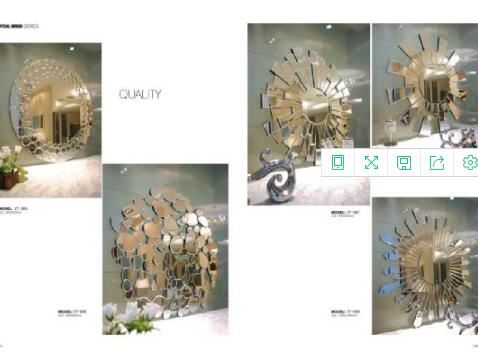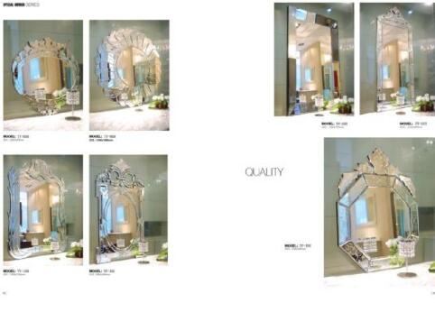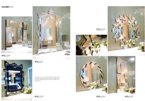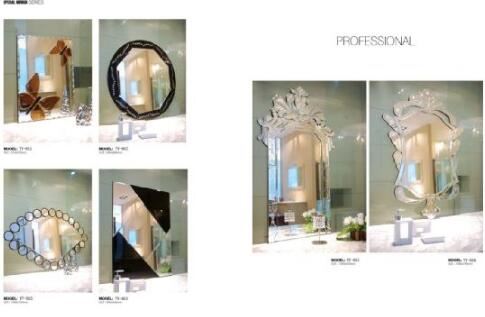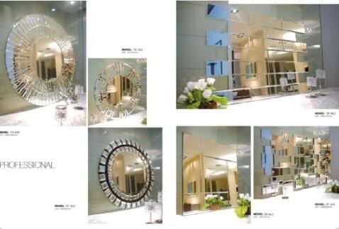 公司所有产品,都是采用MDF板材做底板,喷黑色油漆,面镜为4毫米银镜所有产品,都为纯手工制作。一、手工开片镜子玻璃,二、粗磨加工。三、底边加工。四、细磨加工。五、抛光加工。六、刻花工艺等等而成一个产品从开板,有十二个步骤,才能成成品。