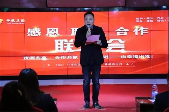 随后,怀化市政协常委、神鹤集团董事长陈波先生发表了热情洋溢的讲话。陈董事长在简要回顾了公司2019年经营主要成就后,对支持公司发展的全体客户、嘉宾朋友表示诚挚的谢意。并表示在2020年,公司将以更加饱满的热情,积极适应市场和客户的需求变化,努力以高质量的产品和服务满足广大客户的需求!陈董事长表示,根据当前大健康产业的发展趋势,神鹤集团正在规划建设以神鹤养生谷为核心、以神鹤民族医药文化一条街为窗口的“中国神鹤康养文旅创意产业园”。产业园内规划建设国际生态老年公寓、国际生态康养栖居家园、国际生态康养度假 酒店、儿童乐园、名老中医医院、民族医药文化一条街、田园综合体、商贸综合 体等等产业集群,全力打造多元化、品牌化的雄踞武陵山片区的康养文旅创意产业园,成为怀化市的一张亮丽名片。2020 年元月份神鹤地心汤泉也将大幕启航、最近又与上海亮子资产管理中心形成战略合作,上海亮子资产管理中心明年拟投资神鹤集团旗下企业 1—2 亿元。将会给神鹤插上强劲的翅膀,神鹤也一定会越飞越高,带给大家更多的健康与福祉!