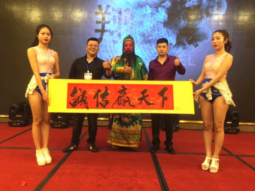 图:关公扮演者翔云(中)题词诚信赢天下