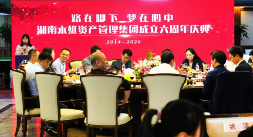 近日,湖南永雄资产管理集团举行了隆重的六周年庆典晚宴,集团董事长、总裁,总裁办公会全体成员,长沙三大作业中心总经理、政委,总部职能部门总监、员工代表及特邀嘉宾等欢聚一堂,共同庆祝这个值得纪念的日子。