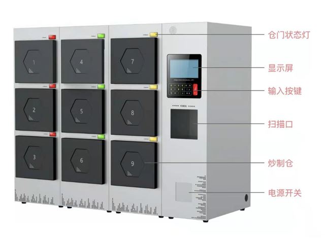 这台机器集合无油烟、无须清洗的智能炒菜机技术、 净菜供应链、炒锅与餐盒一体化的食材盒、自营点餐系统等为一体的平台化品牌。