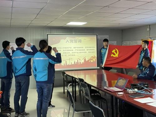 在“学党史”环节,以劳模讲党课的形式重温“西柏坡精神”,并通过互动引导的方式就“西柏坡精神”进行讨论;在“悟思想”环节,与会党员面对党旗庄严宣誓,重温入党时的初心,并在“建设人民满意工程”展板上签名,亮明身份作出承诺,以实际行动誓保项目诚信履约;在“办实事”环节,项目部为大家发放活动定制礼品,由项目总工程师详细介绍项目建设过程中攻克难关、建造人民满意工程的动人事迹;在“开新局”中,深入现场实地参观项目建设情况,全方面了解项目的背景、意义以及亮点。
