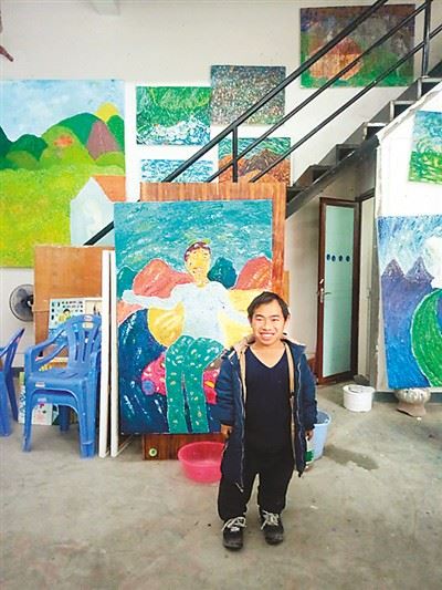 蝴蝶效应不止于此。公益艺术教育还让当地的40多名残障人士直接受益,“画”出新人生。原本在街头流浪的智障人士杨发旺,如今一个月的卖画收入可达1万多元;原本在街头摆摊、身高仅117公分的沈明辉,已有两幅作品被送往法国,参加里昂当代艺术双年展……