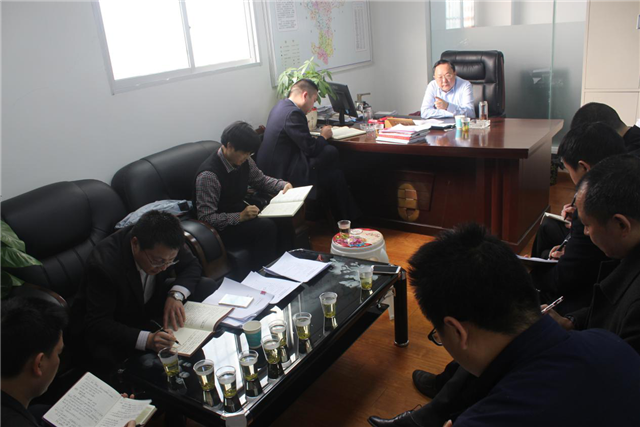 图为;巴州区委书记张平阳在扶贫局召开督查专题研究会