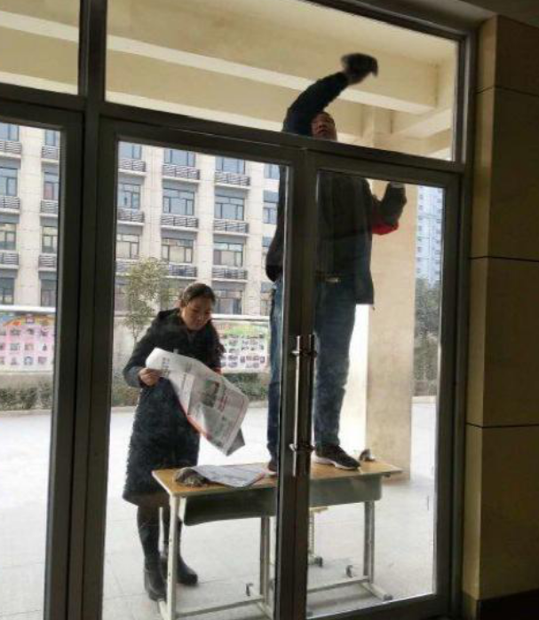 会后,全校家长和师生开始卫生大扫除工作中,扫落叶、清杂草、修剪树木、擦玻璃,很快将校园的每处角落都清洗、擦拭得一干二净。