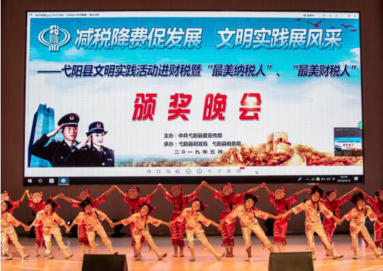 为扎实做好第28个全国税收宣传月工作,围绕“落实减税降费,促进经济高质量高发展”宣传主题,5月20日晚上,江西省弋阳县委宣传部、县财政局和县税务局在方志敏干部学院联合举办“最美纳税人”“最美财税人”颁奖晚会。市税务局、市财政局有关领导应邀出席,县委书记、副书记、县人大主任等县四套班子领导参加,县有关单位、企业、媒体等共400余人现场观看。晚会同时进行了网络直播,共计13000多人次全程观看,让减税降费政策落地有“声”,在全县形成了共话共商共议减税降费政策的生动局面。