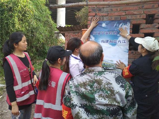 此次宣传深入辖区铁路沿线,田间地头,进村入户,宣讲《铁路法》、《铁路安全条例》、《铁路安全管理条例》以及《内江经开区管委会铁路护路宣传》等,发放宣传单100余份;在村民院落、铁路平交道口及立交桥处,张贴“打造平安铁路,构建和谐内江”的海报40余张。