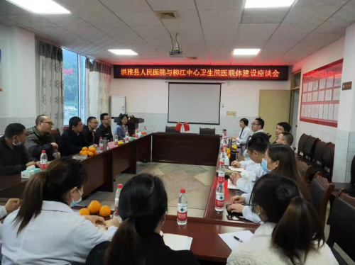 为深入推进洪雅县人民医院与柳江中心卫生院的医联体合作,2022年3月31日下午,洪雅县人民医院院长刘俊良带领县级医疗单位相关医疗专家来到柳江中心卫生院,与科室负责人一起举行了医联体建设座谈会。