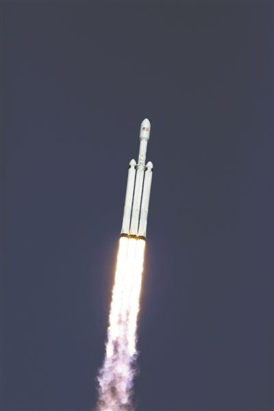 高度近20层楼的“猎鹰重型”火箭,具有执行月球或火星载人任务的潜力,可以将超大型卫星、太阳帆飞船及宇航员送入太空,如回收顺利,火箭还可以重复再利用。
