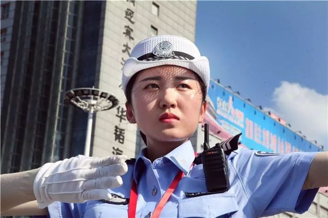 烈日下执勤的辛劳瞬间烟消云散