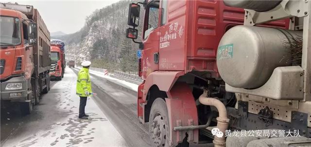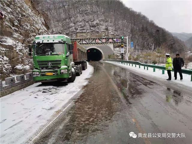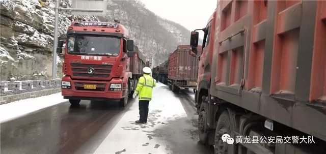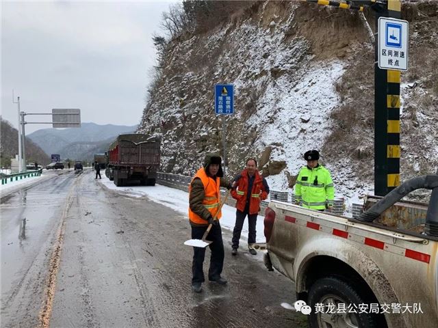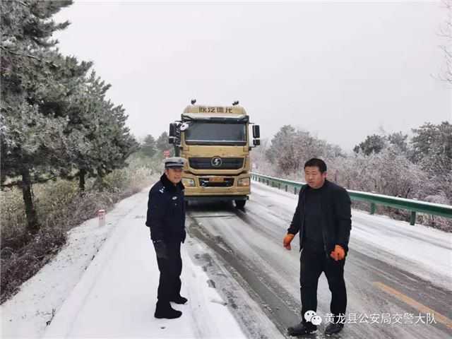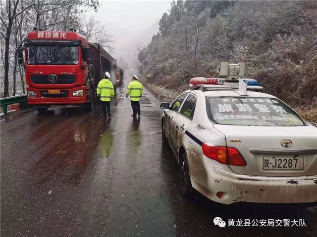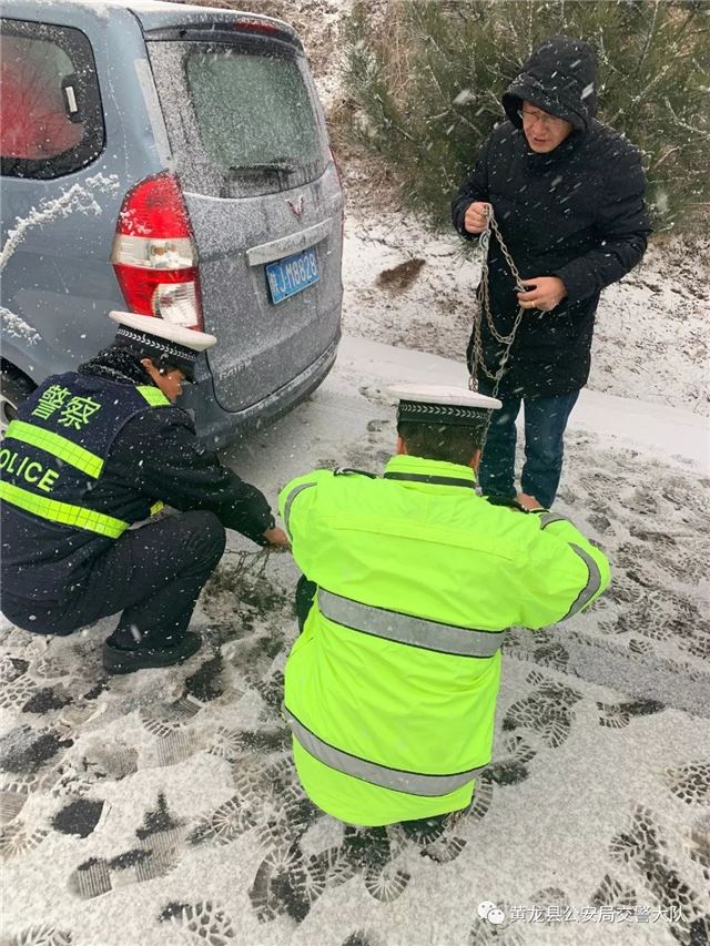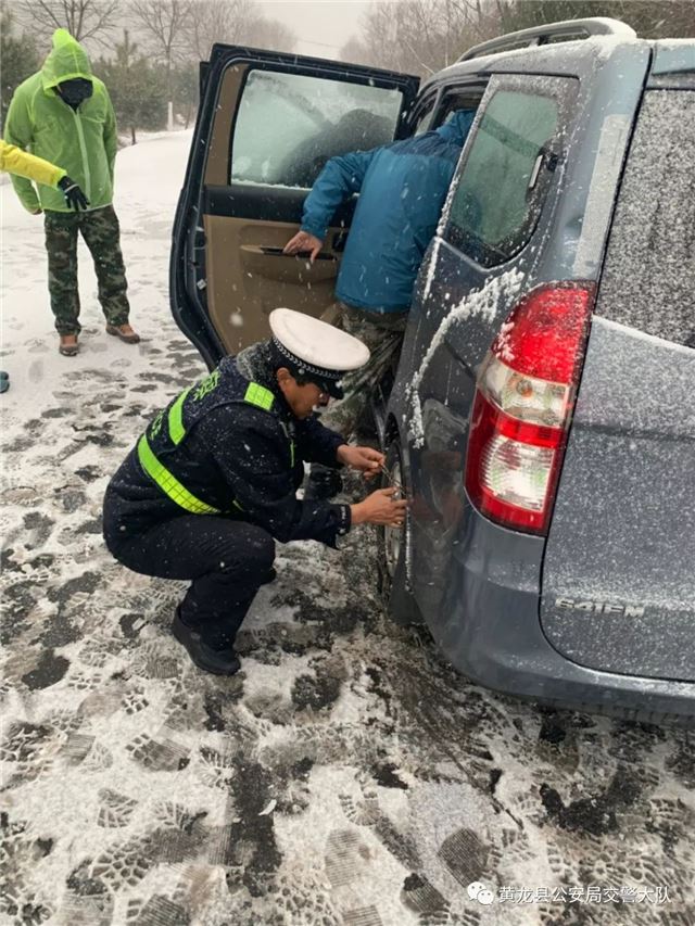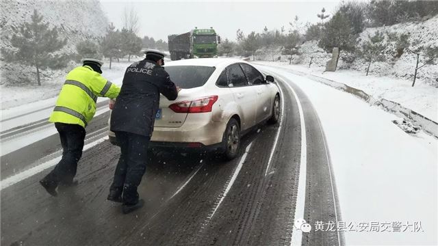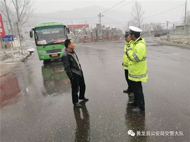 自11月29日晚开始,黄龙辖区出现了降雪天气,漫天飞雪飘来,大地随即变成了银白色的世界,这美丽的雪景,也给广大群众的出行带来诸多不便和安全隐患。黄龙县公安局交警大队立即启动应急预案,全警出动,加大路面巡逻管控力度,加强交通引导,快速处置疏通车辆安全有序通行,同时联系路政等部门开展融雪除冰等工作,利用手机短信平台、微信、微博发送实时路况和安全出行提示,全力确保群众出行安全和辖区交通畅通。