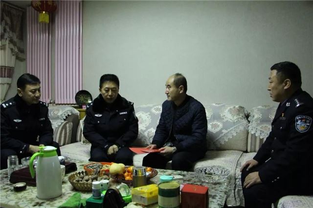 爆竹声声辞旧岁,金鼠送福贺新春。2020年1月19日上午,延安市公安局党委委员、副局长赵军政,刑侦支队支队长曹延峰和刑侦支队办案指导大队副大队长薛刚一行三人在黄陵县公安局党委副书记、政委米奋勇和局党委委员、副政委王燕的陪同下,看望慰问黄陵县公安局因公牺牲民警遗属和因公伤残民警。