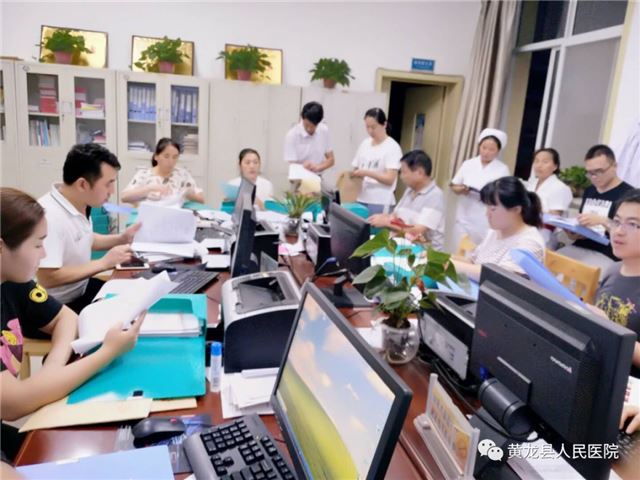 黄龙县人民医院深知此项任务的艰巨和重要,为更好的开展工作,医院成立二甲办,医务科科长谢娅妮担任主任,制定一些列方案、制度和措施;全院200余名职工在二甲办带领下积极火热投身于评审准备工作中,每晚加班加点学习评审条款细则,完善整理资料,熟练各类应急演练、医疗操作,夜以继日、无怨无悔;除了晚上加班以外,还利用每天晨交班时间,科主任护士长对大家进行各种规章制度、应知应会和院感等方面知识进行提问,并对设备操作进行考核,大家共同学习,不断巩固、掌握知识点内容。除了自身努力积极备战外,为做到创建工作万无一失,二甲办组织各科室主任、护士长、医疗部门负责人分别前往子长、黄陵等兄弟医院参观学习,取长补短,不断充实完善不足之处,为创建成功打下坚实基础。