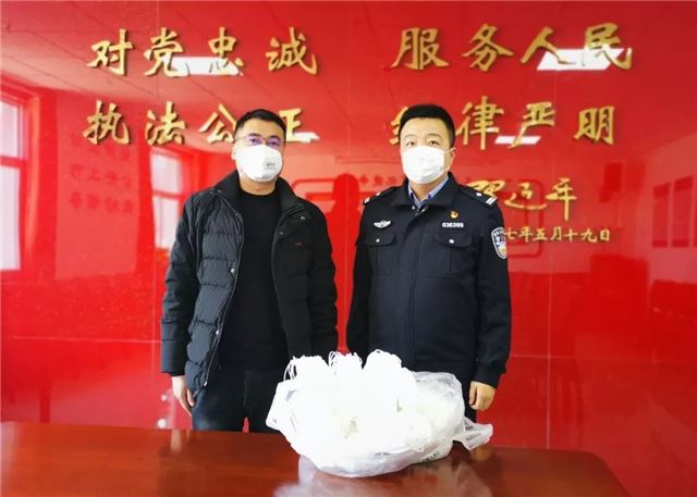 2020年2月10日,县政府常务副县长高晶带领县民政局局长刘玉东,县慈善协会会长纪斗贵捐赠60箱矿泉水、1000个一次性口罩、50L84消毒液