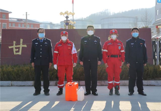 2020年2月12日,甘泉阳光志愿者救援队捐赠84消毒液30L、医用酒精5L