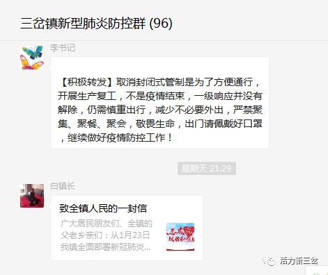 三是在疫情防范宣传上精准发力。“复工生产、开放道路,不是疫情结束,而是保障正常生产秩序”为了告知广大村民群众警惕疫情,时刻防范。镇党委政府通过微信公众号刊发《致全镇人民的一封信》,各村支部通过流动喇叭不间断播放防疫知识,营造紧张有序的生活工作氛围,使得全镇疫情防控工作和村民生产生活同步进行、稳定推进。