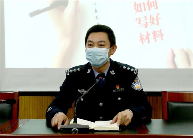 马喜全教导员作为培训主讲人用现场举例、现场互动的方法,从公文认识、写作技巧等方面进行了详细介绍,并根据参训民(辅)警要求,就常用的简报信息,从动态情况和工作经验两个类别进行了重点讲解,以生动的实例剖析了实际工作中因为公文格式不正确、标题不醒目、重点不突出、语言不准确、逻辑思维混乱等原因造成的总结提炼不到位、经验挖掘不深刻、简报质量不高等问题,为民(辅)警写作水平的提升指明了方向、敲响了警钟。