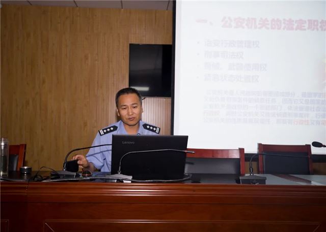 宜振银支队长从公安机关的法定职权、行政处罚与行政强制措施、行政处罚与治安处罚、受案初查立案的联系和区别、公安机关训诫的理解与适用、轻伤害案件的处理、鉴定的理解与适用七个方面进行了精彩的讲解,内容十分贴近实际,贴近实用,贴近实战,参训民警反映良好,课后,将对本次学习内容细致学习、深入研究。
