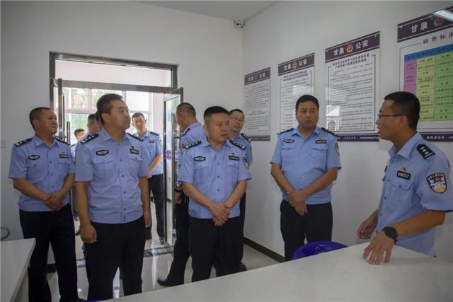 7月3日上午,延安市公安局经开分局党委委员、副局长宜国旗一行11人来到甘泉县公安局进行参观交流学习,甘泉县公安局党委委员、副局长薛振龙陪同参观。