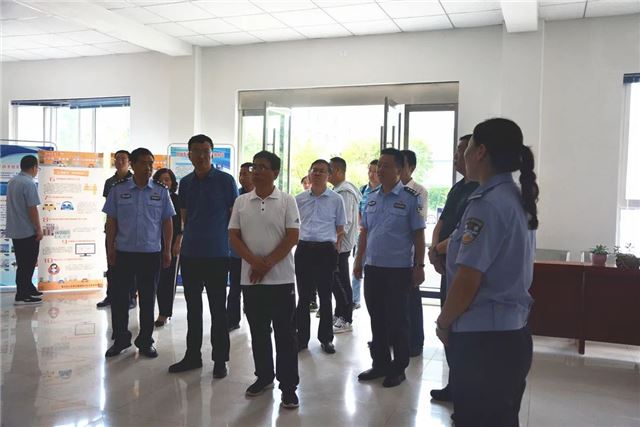 检查中人大常委薛宏伟一行先后参观了宣传长廊、车辆管理所、指挥中心。胡小龙大队长就公安交通管理集成指挥平台建设、智能交通管控平台、执法记录仪管理平台、“321”智能管理服务平台及各类卡口、监控、抓拍系统应用等进行了详细汇报。