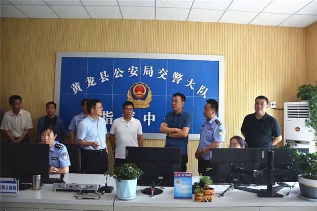 中国基层网讯,7月16日,延安市人大常委委员薛宏伟、副秘书长赵登宏一行深入到黄龙县公安局交通管理大队调研指导科技信息化工作,黄龙县人大常委会主任赵来喜、县委常委、政法委书记吴江宏、县政府副县长李泽斌等陪同检查。
