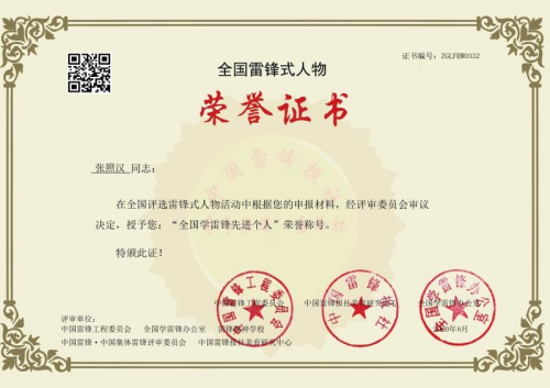 近日,全国学雷锋办公室、中国雷锋工程委员会、中国雷锋报社等单位联合授予福建省晋江市内坑镇土垵村慈善协会常务副会长张照汉“全国学雷锋先进个人”荣誉称号,表彰他在社会公益慈善领域与支援抗疫期间所作出的无私奉献与突出贡献,以及树立的道德楷模与文明风尚。