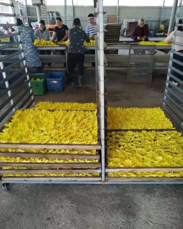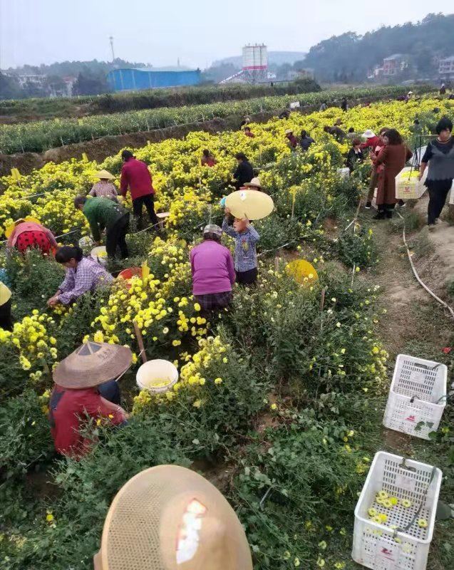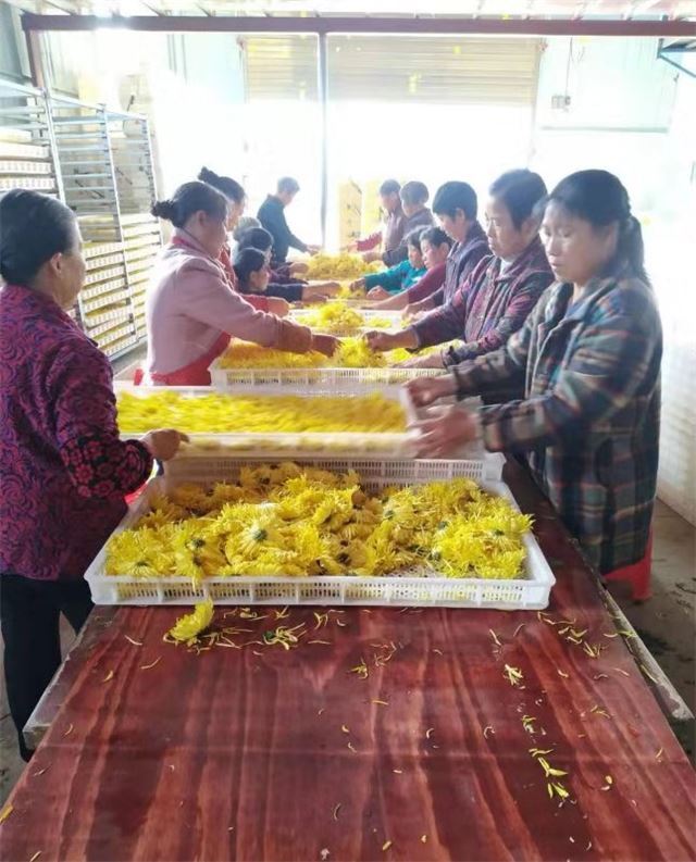 孟公亭组曾经的贫困户卿石桃说:“到了菊花成熟的时节,采花或者烘烤菊花,来务工的农妇多达120多人。嘻嘻哈哈的,都干得热火朝天,好热闹呢!”