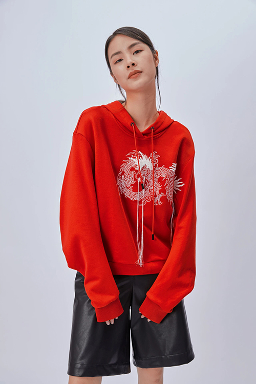 WRONG系列龙卫衣,红与白的交融中,传递摩登东方韵致。龙形图案印花加身,寓意新的一年,以自信之姿迎接全新挑战。