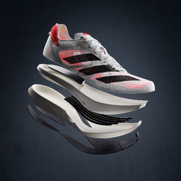 从左至右分别为:ADIZERO ADIOS PRO 2, ADIZERO PRIME X 及 ADIZERO BOSTON 10